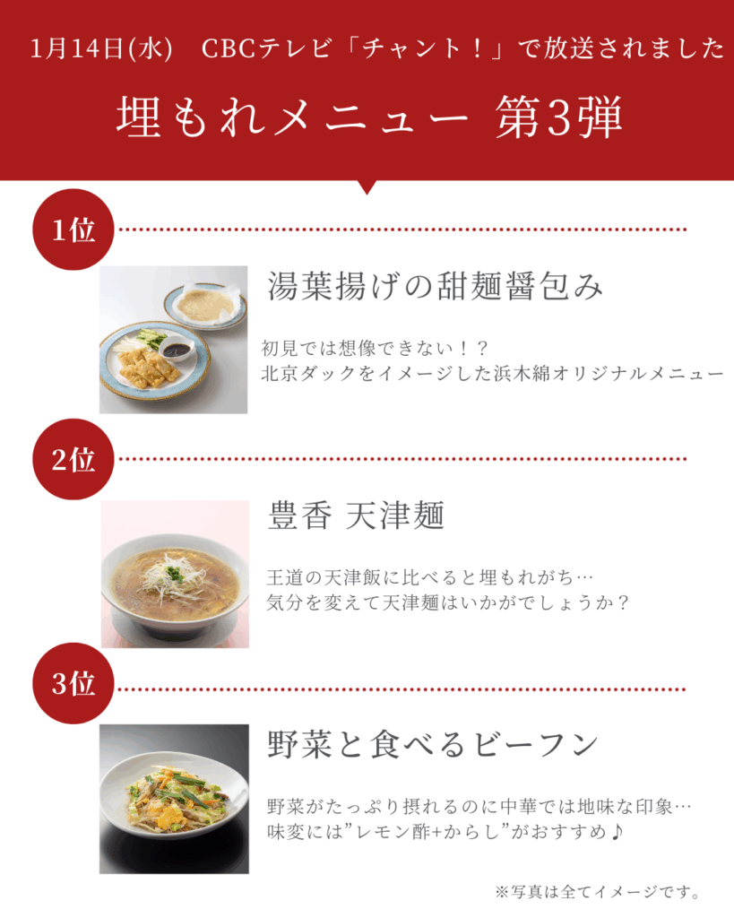 北京ダックをイメージした浜木綿オリジナルメニュー