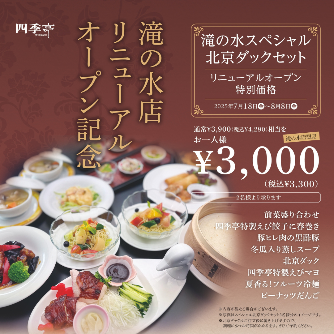 本日7月18日(金)より四季亭 滝の水店が