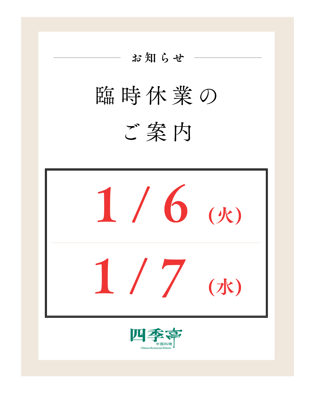 1月6日(火)・7日(水)は従業員のリフレッシュのため